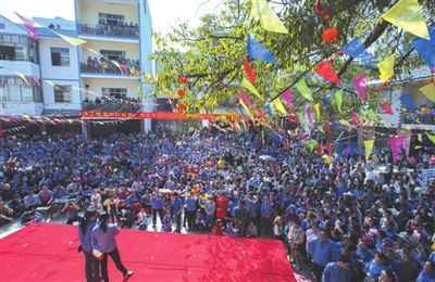 2月21日(正月初三),在凌云县加尤镇下伞村壮族山寨里,锣鼓喧天,歌声飞扬,这是羊年春节壮族山歌会的一个场面。当日,有河池市凤山县,百色市乐业县、凌云县等地的200多名男女歌手前来参加本次山歌会,山歌会场面精彩、气氛热烈,歌手们演唱的都是自己平时创作的壮族原生态山歌,深受广大群众喜爱。当日周边各地近万人前来观看山歌会,通过这次活动不断加深了周边群众的友谊,达到以歌会友以歌传情的目的。 (肖发凌 摄影报道)