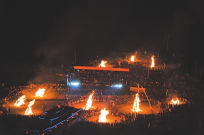 3月1日晚,2015年广西天峨红水河文化旅游节暨壮族蚂拐文化节开幕式在天峨县六排镇纳洞村举行,火把游田垌活动和篝火晚会聚集了近万名游客,每个人的脸上都洋溢着欢乐的笑容,为乙未羊年新春增添了吉祥喜庆。