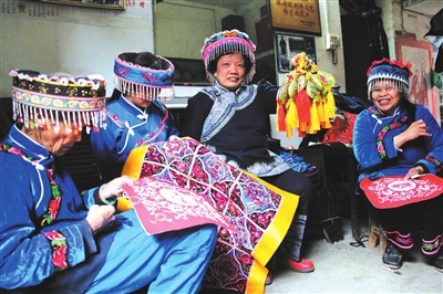 罗城仫佬族自治县四把镇双寨村中寨屯是一个有200多户1000多人的自然屯,大多数家庭妇女都会刺绣,她们绣制的工艺品图案丰富多彩,寓意深远,手工更是精致,深受客商喜爱。该屯妇女每年仅刺绣一项可为全屯增收80多万元。据悉,“仫佬族刺绣技艺”于2010年被列入广西第三批非物质文化遗产名录。
