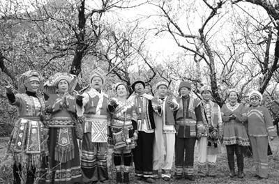 3月7日,来自广西各地的十多名山歌王齐聚恭城瑶族自治县太平村岩头屯,用通俗清亮的山歌歌唱正在盛开的朵朵桃花,与游客分享桃花美景。据了解,本次恭城桃花节将于3月22日结束,因今年免费入园,前来赏花的游客数量大增。(唐日明 谢永恒 摄)