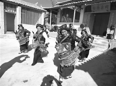 为了促进民族团结,开光当日,文山壮族群众邀请了汉、彝民族同胞及亲朋好友,载歌载舞,共同为勐僚宗祠举行开光活动。(王建国 黄占啊 摄影报道)