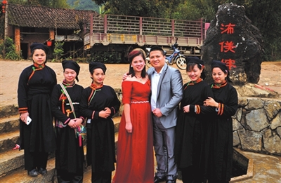 龙州县金龙镇地处中越边境,这里居住着1.8万多人穿长衫自称“布傣”的壮家人,“布傣”人能歌善舞,风俗独具特色,他们的传统婚礼从始至终沉浸在优美动听的山歌之中。