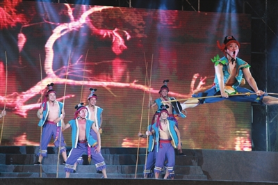 4月19日晚,崇左市文化精品工程代表作——岩画音乐舞台剧《花山鼓舞》在宁明县花山文化广场精彩上演。融歌舞乐戏于一台的《花山鼓舞》展现了壮族人民朝气勃发的生产、生活画面,揭示了壮族儿女怀着对祖先的崇拜,遵循祖先预示,向往、追求真情、美好、欢乐、多趣的人生。融汇了壮族文化、花山文化、原生态文化及神秘文化等,再现了骆越古风,演绎了壮族先人生命密码。《花山鼓舞》拉开了宁明县2015年骆越王节文化活动的序幕。