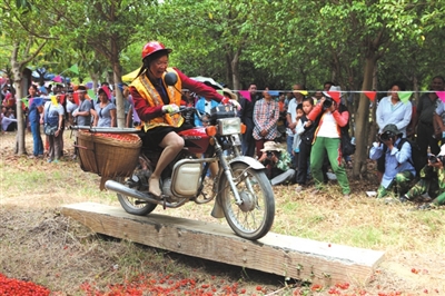 民间竞技造就“壮味”体育盛会。文化旅游节期间的民间体育竞技比赛活动,有抢花炮、抬“花轿”比赛、夫妻挑抬西红柿比赛、圣女池摔跤、斗牛、摩托“拉箩”西红柿比赛、抛绣球等比赛项目,都是从壮族平时的生产生活中演变过来的,非常有壮族特色。圣女池摔跤项目主要是收集群众种植的卖不出去的圣女果尾果、裂果,集中在一个池里,参加比赛的选手在圣女果池里进行摔跤比赛,乐趣横生; 夫妻挑抬西红柿、摩托“箩”拉西红柿比赛等既是丰收喜庆之乐,又是力量、技巧的较量,带给观众的尽是紧张、刺激,抛绣球比赛则突出游客互动性,让游客在游玩中尽情享受比赛乐趣。