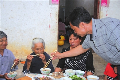 5月6日上午,在广西来宾市平阳镇天堂屯80高龄的壮族老人樊运连家里,笑声阵阵,热闹非凡。樊运连一家三代正好饭好菜款待远道而来的一位中年男子及他的家人。中年男子紧握樊运连的双手,亲切地说:“妈,天气转热了,您要注意换衣服。今天我们有空顺路过来,看看有没有我们能帮上忙的。今年,我们买上车啦,坐人拉货都方便。”在旁看到这一幕的几位天堂屯老人无不为之动容:这个男人有情有义懂感恩,真没见过这么善良孝顺的好人……