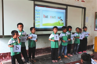 黄田正老师在现场讲授的学前班壮文示范课《At Aet Et》时,利用课件先出示声、韵母卡片,让学生朗读卡片上的声母、韵母,然后让手上持有声母 b、r、s卡片的同学上台寻找手上持有韵母at 、aet 、et卡片的同学,以“寻找朋友”这样有趣的游戏方式进行组合音节。黄老师还通过钓鱼游戏,让学生理解音节"set" 的意思。整个堂课,学生在娱乐中学习,在学习中娱乐。这种以游戏的形式激发学生的学习兴趣、增强学生记忆的教学方法,非常符合学前班学生学习的心理特点。