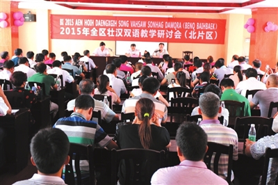 28日至29日,由自治区教育厅民族教育处主办、环江毛南族自治县教育局承办的2015年壮汉双语教学研讨活动(北片区)在环江毛南族自治县举行。我区壮汉双语教育实验县(北片区)的壮汉双语教研员、壮汉双语小学壮语文骨干教师等共130人参加了本次教学研讨活动。