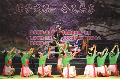 6月13日晚,三江侗族自治县举办2015年“文化遗产日”“非遗”成果展演晚会,将侗乡非遗成果按习俗、歌曲、舞蹈、器乐、技艺及曲艺等类别集中展示,为当地群众上演一场精彩绝伦的“非遗”视听盛宴。
