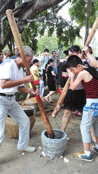 在一块注满水的稻田里,里面放了上百条塘角鱼,随着一声清脆的哨响,瑶胞们开始了“浑水摸鱼”比赛。观众把田边围得水泄不通,不时为抓到鱼的瑶胞欢呼鼓劲;在斗鸡比赛现场,观众屏住呼吸,目不转睛地看着双方较量。只见两只斗鸡在主人松开手的瞬间进入了状态,它们互相撕咬缠斗起来,时而跳跃,时而猛扑……赛场上尘土飞扬,羽翼散落,一时难分高下。在镇圩瑶族乡政府广场上,“上刀山、下火海”精彩刺激的表演正在上演。广场中间竖着一根约8米高的树桩,树桩上插着33把钢刀,一位瑶族民间艺人在完成一系列祭拜仪式后,赤脚踩着刀刃爬上桩顶,而后吹响牛角,将糖果向四周撒下给群众及游客品尝,寓意给人间带来福气。“下火海”是当地瑶胞赤脚踩过烧红的木炭,寓意驱邪、招财,保佑民众风调雨顺,家庭安康。
