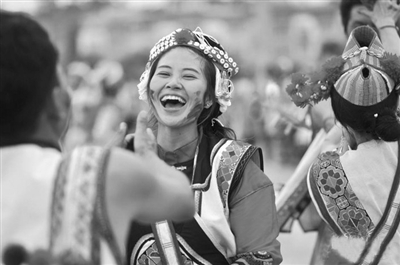 7月18日,第十六届中国云南普者黑花脸节开幕,上万彝族民众和游客互相抹黑脸,以示祝福和喜爱。开幕活动中,警察、主持人都未能幸免被“抹黑”。“花脸节”是丘北县彝族独有的传统节日,因远古先民用锅烟灰把脸部抹黑、驱魔除害而得名。图为参加抹黑脸活动的彝族姑娘。(来源:中国民族宗教网)