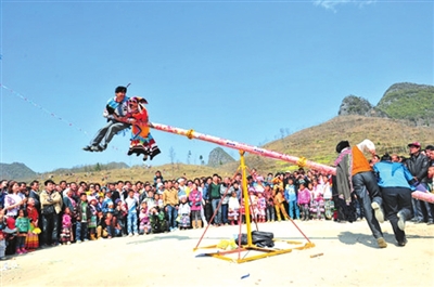 彝族祭送布谷鸟时都要举办一些民间娱乐活动及民间传统体育竞技比赛。抹黑脸是彝族的传统习俗,远方的客人到了彝寨,热情的彝族同胞会悄悄准备好黑乎乎的锅灰,出其不意地往客人脸上抹,意味着给客人送去幸福吉祥。打磨秋是彝族传统体育竞技活动,比赛时现场定规则,双人组合打磨秋或四人组合打磨秋都可以,姿势有腹式、骑式,花样有腹式空中360度旋转、骑式空中360度旋转,在规定的时间内,转的圈数多,做的花样漂亮的组合赢。打磨秋最能体现彝族同胞勤劳勇敢的性格,同时也磨就了彝人的意志,磨秋在旋转,五彩裙在飘动,汇成彝山欢乐的海洋。晚上,彝族人手握火把点燃篝火,参加节日盛会的各族群众手拉手围着篝火尽情地跳起左脚舞。