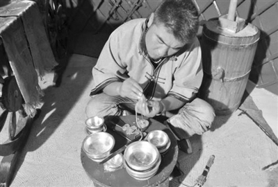 “90后”蒙古族小伙乌德木图大学本科毕业后,没有留在繁华的都市,也没有选择自己的专业就业,而是回到故乡甘肃肃北蒙古族自治县,继续跟父亲学习制作手工银器,希望将父辈制作银器的技艺发扬传承下去。