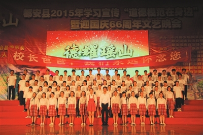 9月28日晚,由中共都安瑶族自治县委员会、都安瑶族自治县人民政府主办,县委宣传部、文明办、文体局承办的《德耀瑶山》——都安2015年学习宣传“道德模范在身边”主题活动暨迎国庆66周年文艺晚会在县文体广场拉开帷幕。