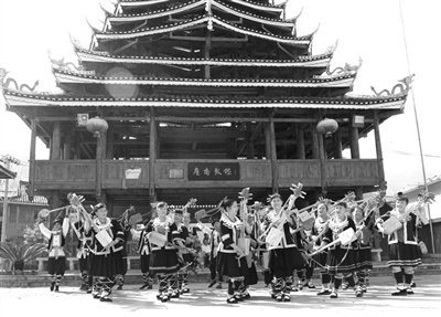 “琵琶歌”是流传于侗族地区的民间歌舞,每当节庆丰收时,侗族同胞们身着盛装,手持琵琶,在欢快的琵琶声中唱歌跳舞,意在祈祷风调雨顺、五谷丰登。 图为10月9日,龙胜各族自治县平等镇广南村村民利用农忙间隙表演琵琶歌,庆祝粮食丰产丰收。(石农兵 摄)