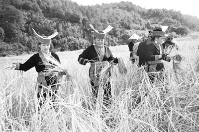 “谷子黄澄澄,瑶哥瑶妹心欢喜,山歌传四方。”10月29日,金秀瑶族自治县金秀镇美村屯的茶山瑶胞边唱山歌边剪禾,庆祝今年的丰收年。