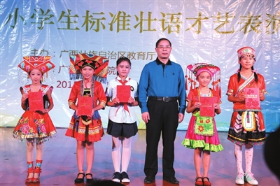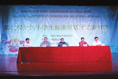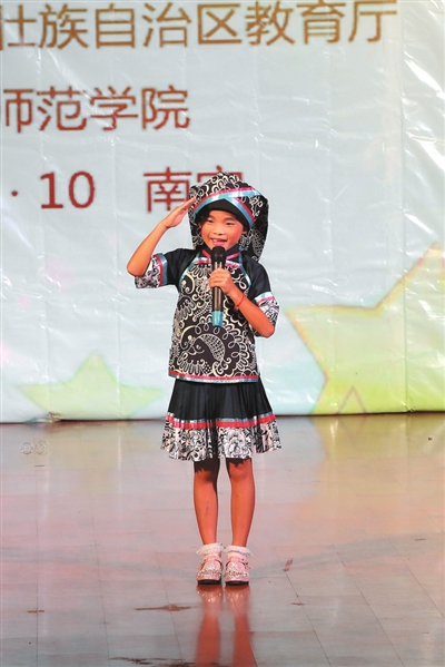 当日上午,由自治区教育厅主办,广西师范学院承办的“第二届全区小学生标准壮语才艺表演赛”在南宁隆重举行。来自全区壮汉双语小学的40支代表队共158名选手通过声乐、小品、戏剧等形式,用标准壮语展现了才艺。