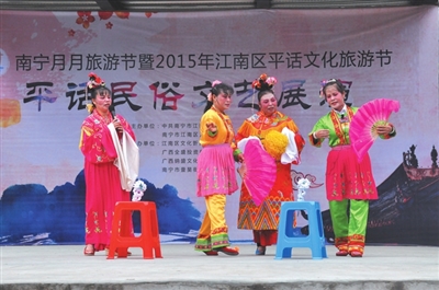 11月19日-21日,首届平话文化旅游节在南宁市江南区举行,为期3天的文化旅游节期间,江南区举办平话文化非遗项目展、平话民俗文化展演、平话文化研讨会等系列活动。旅游节中展示了平话歌舞、平话器乐、平话民俗礼仪等,让更多人亲身体验,了解到平话文化。