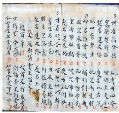 不分卷,1册,40页。佚名撰,清光绪三十年(1905)韦志亮抄本。绵纸,册页装,古壮字,墨书。页面高19厘米,宽17厘米,每半页八行,行十四字。入选第三批《国家珍贵古籍名录》,编号09842。