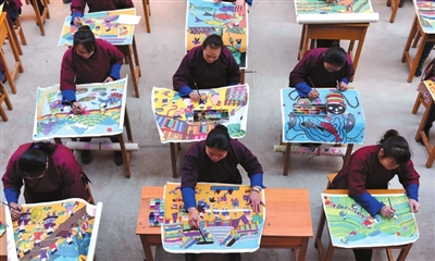 12月17日,三江侗族自治县妇联在独峒乡独峒村举办“妇女之家农民画擂台赛”。40余名侗族女性农民画家、爱好者现场比拼画技,以独特视角反映国家各项优惠政策、美丽乡村、民族团结等丰富内容,使作品闪耀出时代魅力和民族风采。图为侗族女性农民画家在创作擂台赛作品。