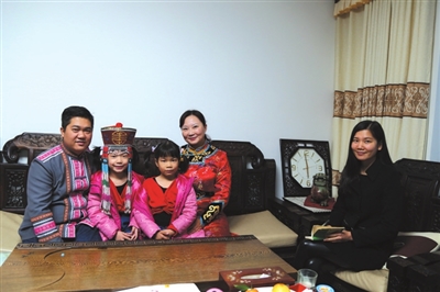 蒙古族的姥姥照顾两个外孙女的饮食起居,闲时姥姥和妈妈教两个孩子唱蒙古族歌曲,跳蒙古族舞蹈。两个7岁的孩子已经学会了很多草原歌曲,节日里还爱唱上几首让长辈们高兴。壮族的爷爷奶奶则负责孩子上下学的接送。放学路上, 曾经在民族语文工作部门担任领导职务的爷爷不时教孙女们几句壮语,爷孙三个其乐融融。两个不同民族的长辈共同呵护着祖国花朵的成长,潜移默化中,两个民族的文化也在小朋友们的心中播下春天的种子。