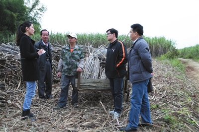 记者驱车前往距离县城12公里的馗塘村。一路上道路两旁的甘蔗林郁郁葱葱,一派丰收景象。此时正逢榨季,途中遇到了正在砍收甘蔗的壮族村民农学峰。听说我们为了解“多语”而来,他用普通话告诉记者,他和妻子都是壮族人,夫妻之间说壮话,由于村里有说汉语方言白话、客家话的汉族人,他现在会说白话,客家话也能听懂一部分,会说简单的日常用语。“大家同在一个村里住,你学几句我的话,我学几句你的话,慢慢地就都会讲了嘛!”他还告诉记者:“我的孩子也会讲壮话、白话和普通话。”
