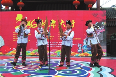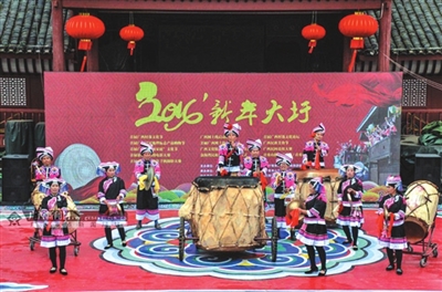“‘赶圩’啰!”1月1日上午,广西民族博物馆露天展示园的广西民族村里,锣鼓喧天,歌声嘹亮,2016新年大圩系列活动在这里拉开帷幕。“新年大圩”为南宁市民带来一场最有“年味”的民族文化盛宴。在这里,人们可以观赏到紧张激烈的民族竞技大赛,品尝到广西各地获得国家地理标志保护的特色美食,还能买到独具匠心的民族特色工艺品,更能领略到民族村落文化的内涵。