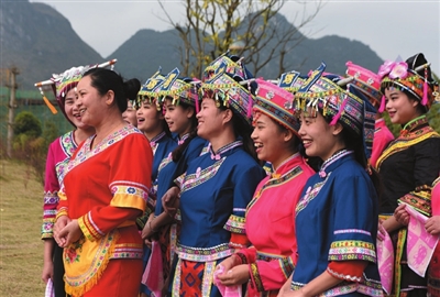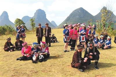 1月6日,罗城仫佬族自治县的仫佬族青年举行走坡活动。走坡节是仫佬族青年对歌交友的传统节日,一般在春节和中秋节前后举行。每当节日到来之时,仫佬族青年便结伴而行,聚集在山清水秀的山坡上唱起山歌,以歌会友,以歌传情,以歌为媒,谈情说爱,寻觅意中人。罗城走坡节已被列入广西非物质文化遗产保护名录。(韦如代 摄)