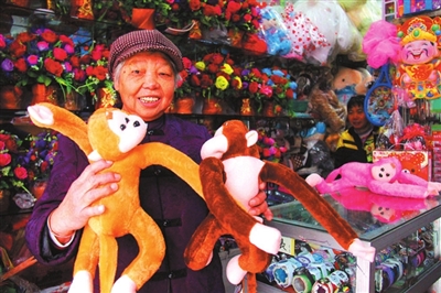 据了解,猴子玩偶、生肖猴台历、猴年挂件、猴子毛绒玩具……在多家超市和批发市场内,带有猴年元素的商品都被商家摆在了最显眼的位置,憨态可掬的“猴子们”吸引了不少市民的目光,也为即将到来的猴年营造出浓浓的节日气氛。