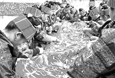 贵州省2013年启动实施的妇女特色手工产业“锦绣计划”,已成为该省推动妇女事业发展的一张“特色名片”,也是大众创新、万众创业中的一条新路。2015年11月23日至24日,贵州省妇女特色手工产业锦绣计划工作推进会在黔东南州举行,把这项工作推向一个高潮,推动了锦绣计划与休闲、会展、文化、地产、购物等多种业态联动发展。如今,打破“一盘散沙”式的落后生产模式,走上产业化、规模化、市场化发展道路,黔东南州民族特色手工业之花正娇艳绽放,10万绣娘正奔向“锦绣前程”。图为黔东南州台江县老屯村的“绣娘”正在刺绣。
