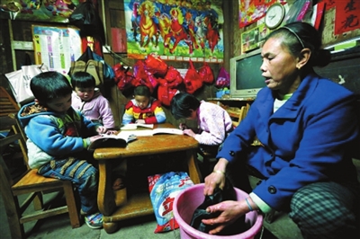 三个女儿生下的四个孩子,陆陆续续都交给赵桂兰照顾。为了方便孩子读书,两个女婿凑了7万元,买下瓢里镇上的一所老屋。两个家庭在外拼命打工还债。三女婿家最困难,每次背着米回来看他们,都拿不出余钱。“看到三女儿头发洗了,脸是白的手是白的,老公疼她,我就安心了。”赵桂兰说道,她的脸上全是岁月的沟壑,藏不住生活的重压,同时也藏不住亲情的温暖。