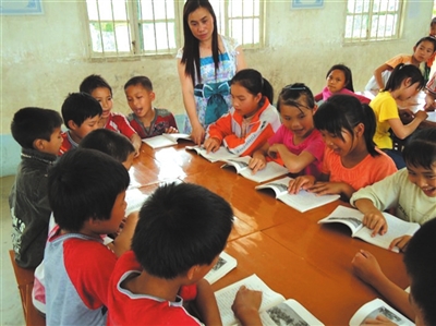 为了使壮汉双语教学得到稳定发展,确保教育教学质量得到不断提高,学校在安排课程上做到了同一位老师教两门语文课,即壮语文和汉语文课。因为壮汉语文的课文是一一对应的,壮汉双语教师在教学上这样安排:一篇课文,第一课时上壮文课,由于壮族学生的母语是壮语,壮文是壮语的文字载体,学生能读其音便知其意。教师利用壮语优势帮助学生理解课文内容,体会文章所表达的思想感情,为教学节省时间。第二课时上汉文课,注重指导朗读,让学生在情景中朗读,增强语感,发展语言,读中感悟,如果还遇到不懂的词、句,通过壮汉对照,帮助学生理解,加强运用,体现语言与文字训练的有机统一。学校的壮汉双语文教学课堂以壮汉双语教学16字方针为指导思想,即构建“以壮为主,壮汉结合,以壮促汉,壮汉兼通”的壮汉双语同步教学模式。几年来,双语教师们立足校本研究,在课改中不断摸索,总结出适合自己的教学方法,教学成绩犹如芝麻开花——节节高。因此,该校连年被自治县评为教学质量优秀学校。2009年,罗日仙同学在小学语文科毕业测试中考了满分(120分),获得学校颁发语文科状元奖。2012年中考,她以全A+的好成绩升入环江高中,2015年,她以优异的成绩考上南京信息工程大学。这件事在村里传开后,真是鼓舞人心。