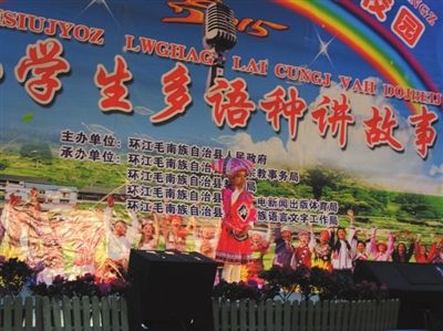 播放壮语歌曲。学校利用校园广播系统,分别在晨读前、午休前、午休后三个时段定时播放小学生的壮语校园歌曲,坚持壮语歌曲进课堂,要求全体师生必须会唱几首壮语歌曲。