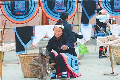 图为白裤瑶妇女在活动现场展示绞纱技艺。(符龙强 摄影报道)