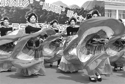 2月20日,罗城仫佬族自治县在民族文化广场举行“祝福春天”庆元宵暨第七届全县农村群众文艺会演,仫佬山乡各族群众载歌载舞,欢庆猴年元宵佳节。图为演员在表演彝族舞蹈。
