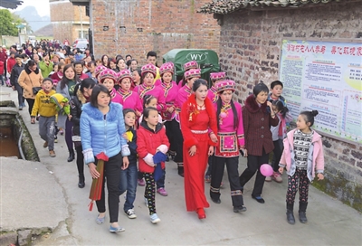 2月27日,罗城仫佬族自治县东门镇中石村上南岸屯一名仫佬族男青年与四把镇新印村陈家甫屯一名仫佬族女青年举行仫佬族传统婚礼,传统简朴而富含民族文化底蕴的婚礼吸引了众多群众围观、拍照、点赞,整个婚礼过程喜气洋洋、欢乐祥和。