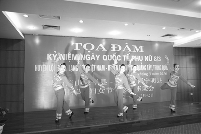 图为禄平县妇女代表团演员表演越南民族舞蹈。(周贻刚 摄)