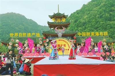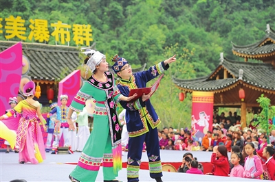 3月8日,环江毛南族自治县首届“民族之花”相约世界自然遗产地服装服饰展示大赛在该县牛角寨景区举行,此次大赛主题为“看民族魅力服装秀·游环江醉美瀑布群”。活动以毛南族、瑶族、苗族、水族等民族服装服饰为题材,妇女同胞们通过舞蹈、歌伴舞、情歌对唱等形式集中展现环江浓郁的少数民族风情、鲜明的地域特色和强烈的时代气息,为群众及游客送上了丰盛的民族文化大餐,营造了浓厚的喜庆氛围。