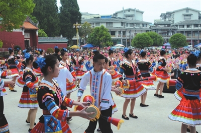 3月27日,恭城瑶族自治县在该县文武广场举行瑶族长鼓操展演活动,近千名群众同台竞技,其乐融融,吸引不少游客和摄影爱好者前来参观体验。近年来,该县注重民族文化的挖掘与传承,将民族文化融入乡镇、社区、学校和村屯,有机结合民俗游,展现了瑶乡人民积极向上的精神生活风貌。据悉,目前该县已有12个项目列入市级非物质文化遗产项目名录。(梁 辉 摄影报道)