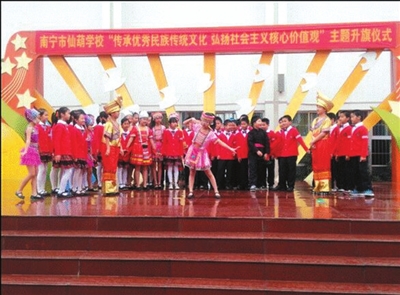 南宁市仙葫学校在3月21日至3月28日组织开展“三月三”民族风情文化周主题活动,利用晨会升旗仪式、班级主题班会、板报等阵地积极开展具有浓郁壮乡特色的民族民俗文化活动,以此发挥先进文化的导向作用,弘扬本民族文化,陶冶学生情操,激发学生热爱家乡、热爱民族、热爱生活、奋发向上的精神风貌,培养学生热爱民族文化、传承民族文化的意识和能力,使学生在多民族和谐校园中快乐成长。