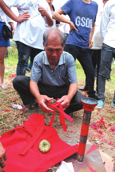 在一片100多亩宽阔的空地上,几十面红、黄、蓝、绿的彩旗围圈出了抢花炮的场地。