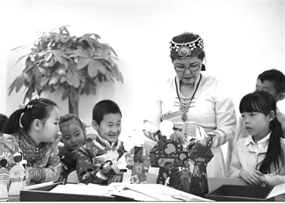 4月2日,内蒙古儿童图书馆的老师在教小朋友制作“哈尼卡”。当日,该馆举办周末活动,受邀参加活动的小朋友们在现场学习达斡尔族“哈尼卡”的制作过程,感受少数民族传统文化的魅力。“哈尼卡”是一种用纸折剪制作的玩具人,过去也用桦树皮制作,是达斡尔族的传统纸偶技艺。