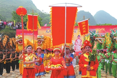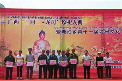 “石南海”边话慈孝,“岜仙山”下扬美德。4月9日,广西“三月三·龙母祭祀大典”暨上林县塘红乡第十一届龙母文化节在上林县塘红乡石门村石门庄龙母文化广场隆重举行,来自忻城、南宁、来宾等周边县市上万名游客参加了祭祀大典。