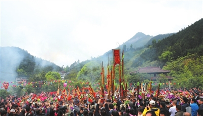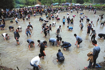 4月9日,地处广西九万山腹地的三防、汪洞和怀宝等乡镇各族同胞汇聚三防镇拉川村四博花坪,开展唱山歌、吹芦笙、跳芦笙舞、抓活鱼等丰富多彩的民俗文化活动,欢庆传统节日。