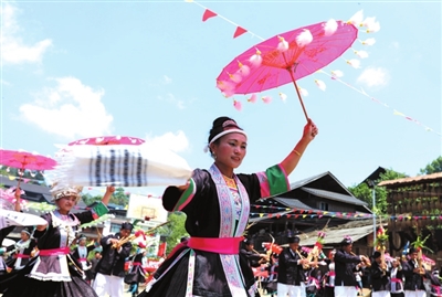 4月16日,三江侗族自治县洋溪乡高露村举办首届油茶文化节,当地群众以打油茶、百家宴及民俗风情展演等节目,尽展侗族百样风情,吸引了众多游客前往观赏体验。