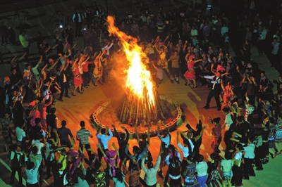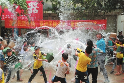 “五彩三月三 ,歌飘万峰湖”活动现场,来自西林县各乡镇,云南罗平县鲁布革乡,贵州兴义市三江口镇、鲁布格镇等地的歌手欢聚一堂,以歌会友,以歌传情。现场锣鼓争鸣,歌舞飞扬,震撼人心。让人激动万分的是乡村趣味竞技活动和激情祈福泼水活动。活动现场人山人海,呐喊声、加油声、欢笑声此起彼伏。爱好运动的人们,尽情参与各种特色体育竞技活动——壮族的抛绣球、撑竹竿竞赛,红绸带较量……让人们在极具情趣的互动竞赛中,促进交流,增进友谊。在撑竹竿较量现场,两个选手用一根竹竿挺着各自的小肚比较力气的大小,看得观众惊心动魄,大气不敢喘。在振奋人心的泼水活动现场,一桶桶一瓢瓢水从四面八方泼过来,水花四溅,把人们从头到脚淋得湿漉漉,而脸上却乐开了花。