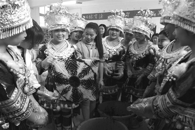 4月24日,融水苗族自治县文联、教育局等单位在职业中学联合举办苗族蜡染进校园开班仪式,40多名以苗族为主的少数民族学生、教师分别参加了苗族扎染、蜡染等民间艺术培训,传承民族文化。