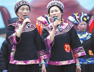 “我家住在茶山上,门前有条布柳河,今天我来把歌唱,唱出美丽新生活”。4月25日上午,一首首自报家门、赞美家乡的山歌拉开了2016年凌云县两会一赛桂西民族山歌擂台赛序幕,来自百色市的凌云、乐业、田林、隆林以及河池市的南丹、凤山、东兰、巴马县等42名壮、汉、瑶族男女山歌手同台竞技,一争高低。
