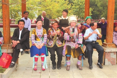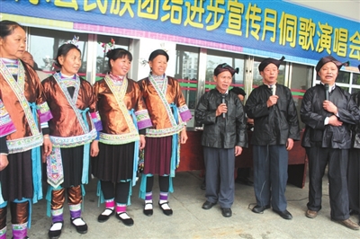 在地处桂北元宝山脚下的融水苗族自治县,有许多活跃在大街小巷的山歌队,他们中间有离退休老干部山歌传承人,也有十五六岁的山歌继承人。每逢当地赶圩的日子,这些山歌队便搭起歌台,围绕生产生活、亲情爱情、新形势等内容即兴编唱群众喜闻乐见的山歌。各个山歌队从县城深入到山村苗寨,在每个山寨唱响充满正能量的“五彩山歌”。