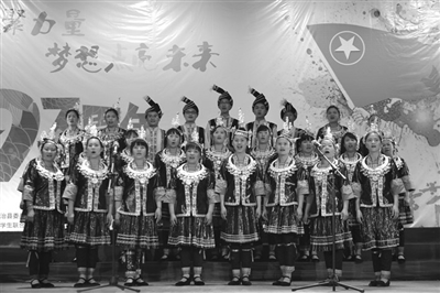 5月4日晚,龙胜各族自治县举行主题为“青春凝聚力量,梦想点亮未来”纪念五四运动97周年青年文艺晚会。晚会分为挥斥方遒·青春描绘新篇章、滴水石穿·青春凝聚新力量、长风破浪·青春放飞中国梦、任重道远·青春勇担新使命4个篇章。来自龙胜大学生联合会、龙胜中学团支部等13个组织的精彩节目轮番上演,每个节目都焕发青春活力,传递社会正能量,给该县广大群众送上了一场精彩的青春文艺盛宴。图为演员在表演侗族大歌。(潘志祥 摄)