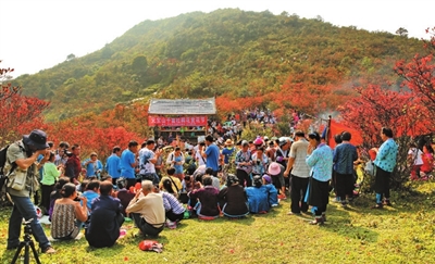 五月,大苗山深处的元宝山,千亩杜鹃花争奇斗艳。吹芦笙,赶坡会,斗马,坐妹,民族风情活动在花丛中轮番上演。